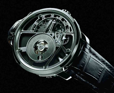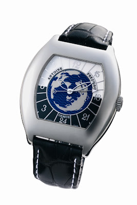 Auf dieser prächtigen Version der Transworld-Linie von Antoine Preziuso wird das Thema der Reise durch das erstaunlich originale, große kieselartige Gehäuse hervorgehoben. Das 24-Stunden-Zifferblatt verfügt über große Ziffern in 3-Stunden-Intervallen mit dazwischen liegenden "Stundenlinien", die symbolisch die Sonnenstrahlen anzeigen und in der Praxis die Längen auf einer Weltkarte darstellen. Es wird auch visuell durch eine helle obere Zone gekennzeichnet, um Tagesstunden und einen dunklen unteren Abschnitt anzuzeigen, um die Nacht zu zeigen.